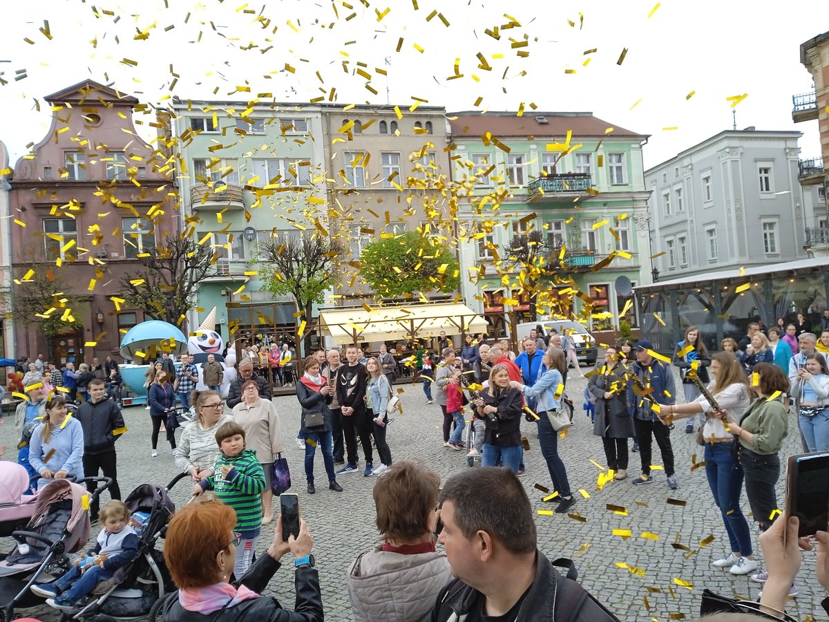 Dzięki uprzejmości Muzeum Okręgowego w Lesznie fani historii Leszna mieli okazję zwiedzania rynku i poznawania tajemnic przyrynkowych kamieniczek w formie spaceru z przewodnikiem. Zaraz potem mogliśmy podziwiać występy Grupy Akrobatyczno-Cyrkowej PEGAZ z Miejskiego Ośrodka Kultury oraz Mażoretek Orkiestry Dętej Miasta Leszna (kadetek i juniorek). Bardzo dziękujemy im za przepiękne pokazy!