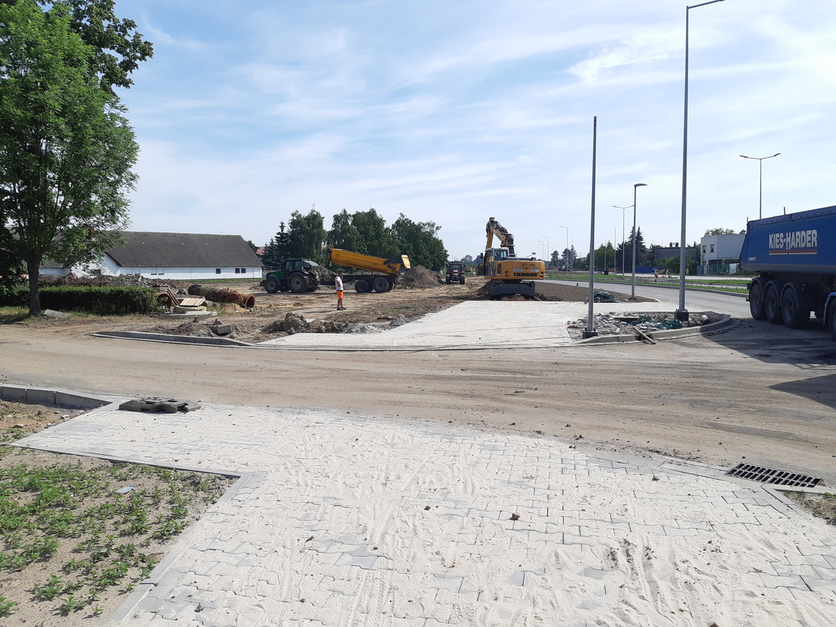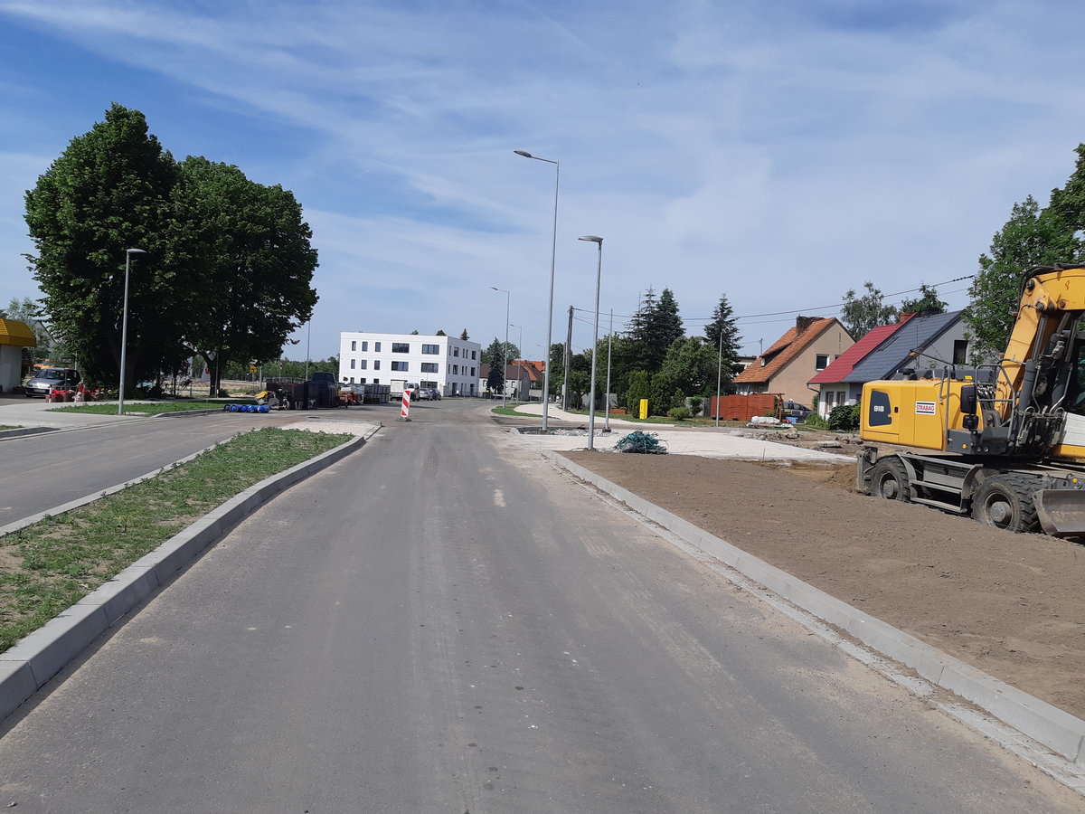 Dzisiaj na wybudowanym rondzie ul. Szybowników z ul. Działkową kładziona jest pierwsza warstwa asfaltu. Wykonywana jest dodatkowa jezdnia obsługująca posesje. Budowane są także sieci kanalizacji deszczowej i wodociągowej. Generalny Wykonawca robót wraz z postępem prac na bieżąco wykonuje prace związane z usuwaniem kolizji, budowana jest także sieć linii kablowej oświetleniowej oraz zasilanie do monitoringu.