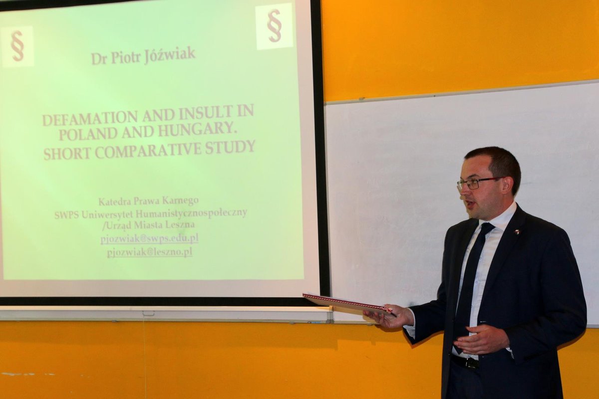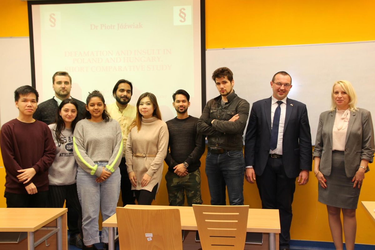 - wzięli aktywny udział w International Week organizowanym przez University of Dunaújváros, a dr Piotr Jóźwiak wygłosił wykłady z zakresu prawa medialnego dla studentów z Węgier, Indii, Kazachstanu, Zjednoczonych Emiratów Arabskich, Wietnamu i Syrii.