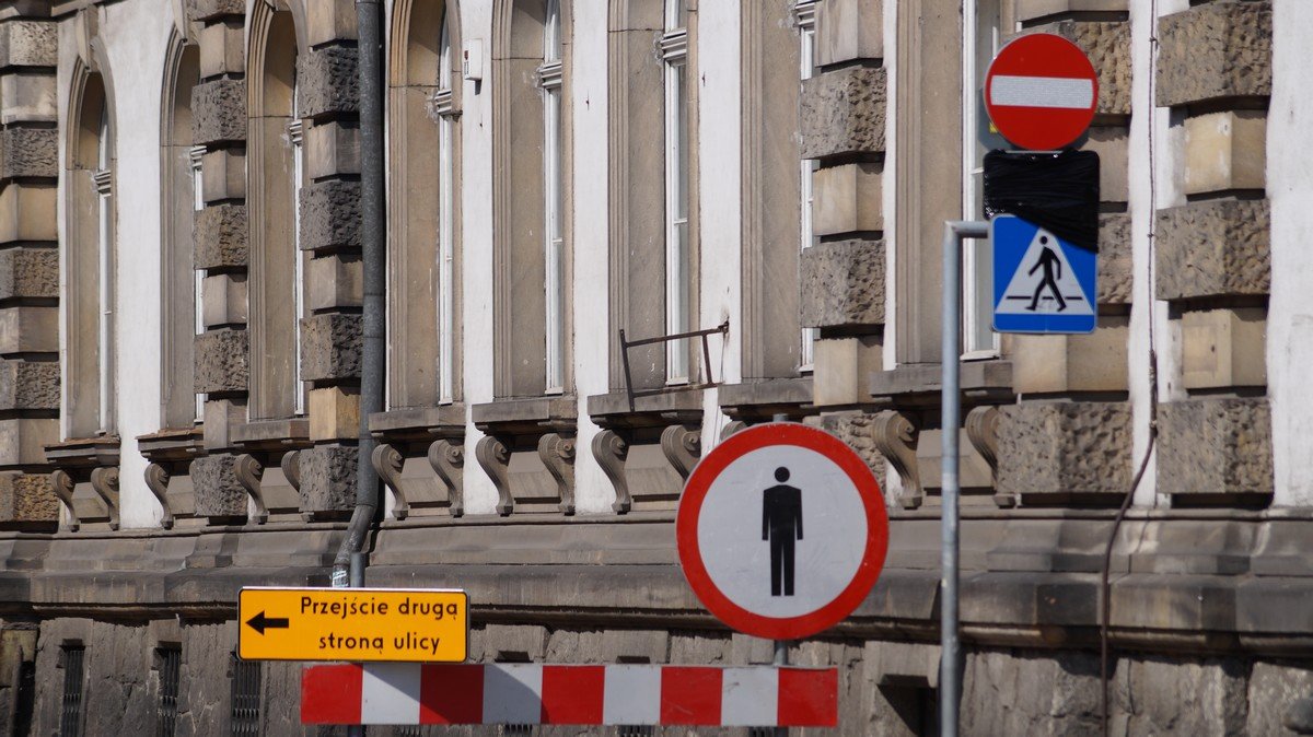 W związku z robotami budowlanymi zamknięta dla ruchu kołowego jest odcinek od ul. Towarowej do ul. Klonowicza oraz od ulicy Klonowicza do Al. Zygmunt Krasińskiego. Skrzyżowania z ww. ulicami są czynne z ograniczeniem relacji do przejazdu na wprost. Wjazd na zamkniętą ulicę Słowiańską mają jedynie pojazdy służby miejskich, pojazdy budowy oraz pojazdy zaopatrzenia punktów handlowych zlokalizowanych przy ul. Słowiańskiej. Ruch pieszych prowadzony jest chodnikami naprzemienne północną i południową stroną ulicy.
