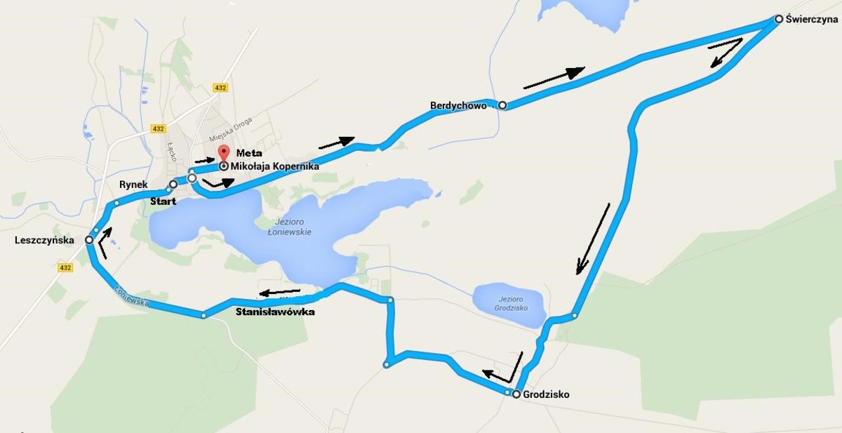 - Przejazd przez Rynek i ul. Kopernika w kierunku METY przy Szkole Podstawowej.
