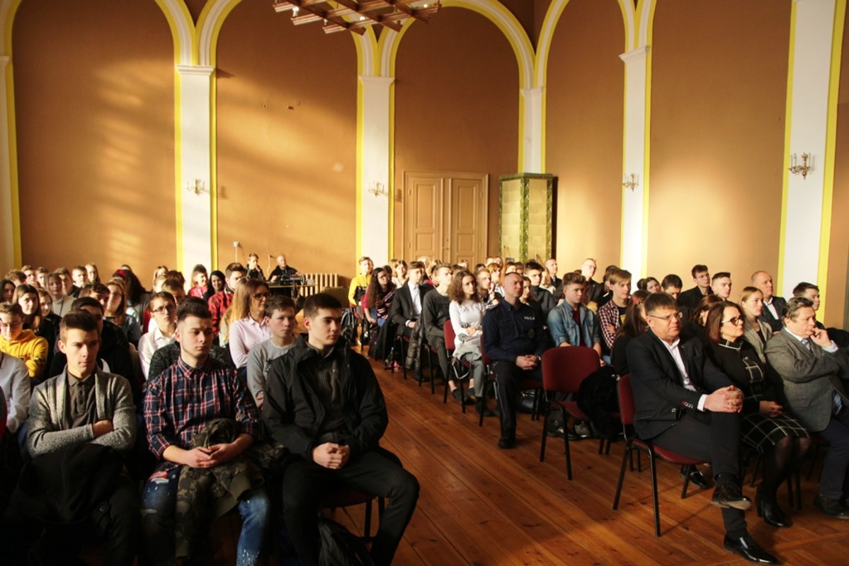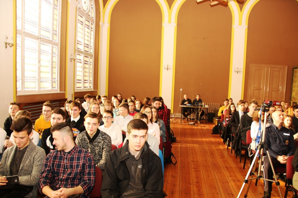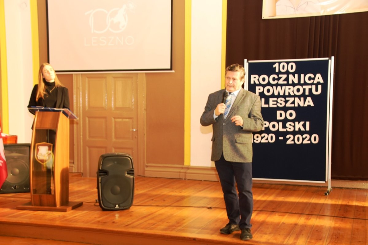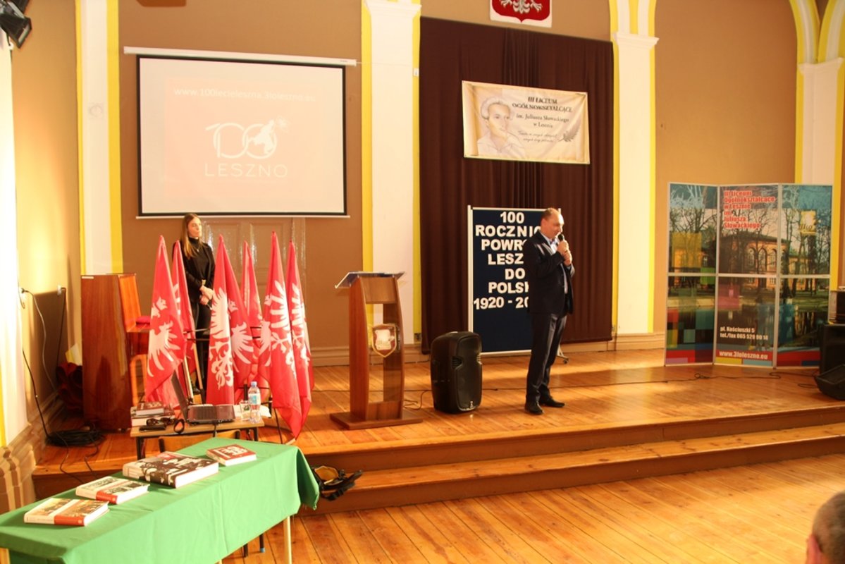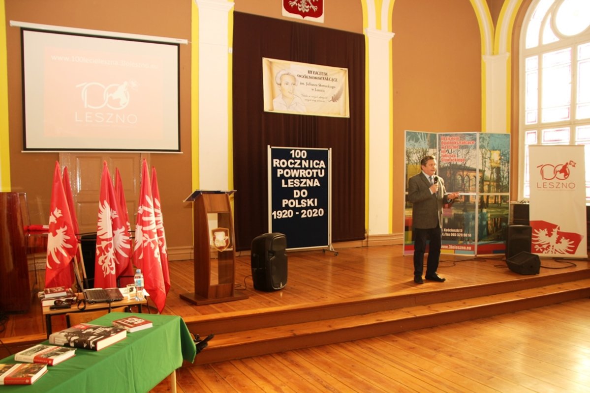 Wstępną prelekcję o wydarzeniach 17 i 18 stycznia 1920 roku w Lesznie przedstawił nauczyciel historii w III LO Waldemar Warciarek.