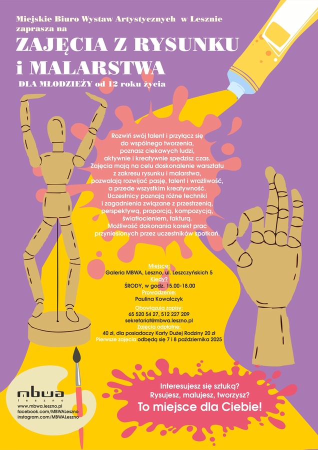 ZAJĘCIA Z RYSUNKU I MALARSTWA DLA MŁODZIEŻY w MBWA Leszno