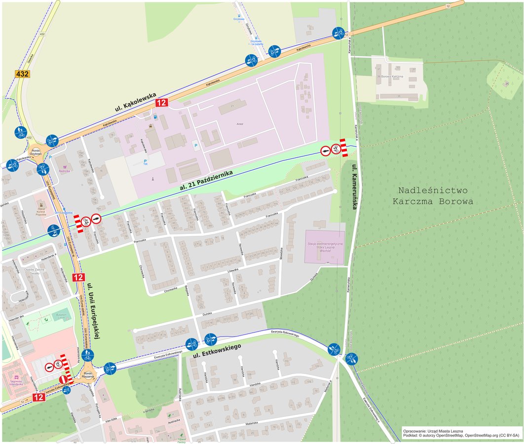 Opracowanie graficzne: Urząd Miasta Leszna, Podkład mapy: © autorzy OpenStreetMap (CC BY-SA 2.0)