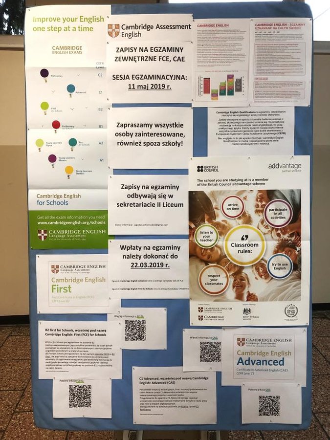 Zapisy na egzaminy odbywają się w sekretariacie II Liceum.