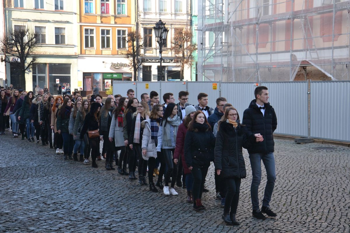 Za polonezowy korowód odpowiedzialne były panie: Martyna Norek-Mania i Romana Woźna, które kolejny raz pokazały, że są w tej dziedzinie niezastąpione. Całość zorganizowała i poprowadziła Lilianna Zimniak. Nie byłoby jednak tego wydarzenia bez ogromnej pomocy Biblioteki Ratuszowej, która udostępniła młodzieży sprzęt nagłasniający.