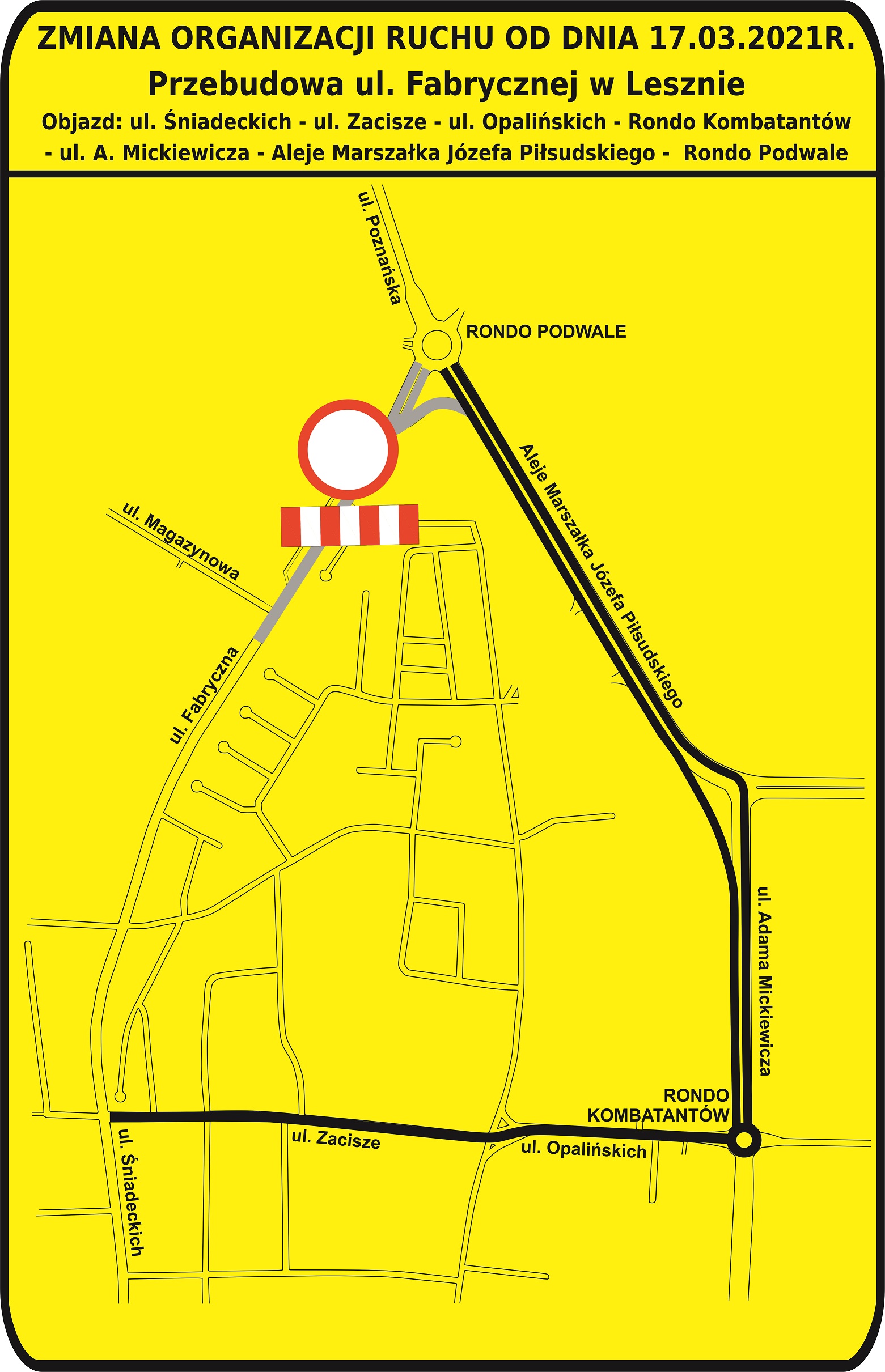 Odcinek od Ronda Podwale do ul. Magazynowej, włącznie ze skrzyżowaniem z tą ulicą, będzie wyłączony z ruchu.