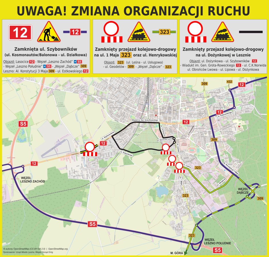 Generalny Wykonawca Robót na linii kolejowej E 59 Spółka Torpol zawiadomiła o zmianie terminu planowanego zamknięcia przejazdów drogowo-kolejowych w Lesznie: w ciągu ul. 1 Maja, ul. Henrykowskiej i ul. Dożynkowej.