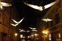 - Żurawie są zawieszone dość nisko, prawie na wyciągnięcie ręki. Jakby były w ruchu, który został zatrzymany w kadrze - tłumaczył artysta. - Deptak jest kameralny, nie wchłania instalacji, ale ją podbija. W dużej przestrzeni praca mogłaby zostać pożarta, a tak staje się bardziej monumentalna.