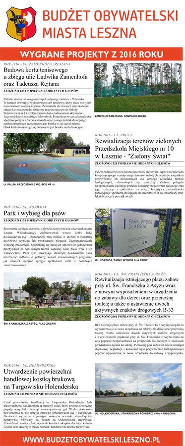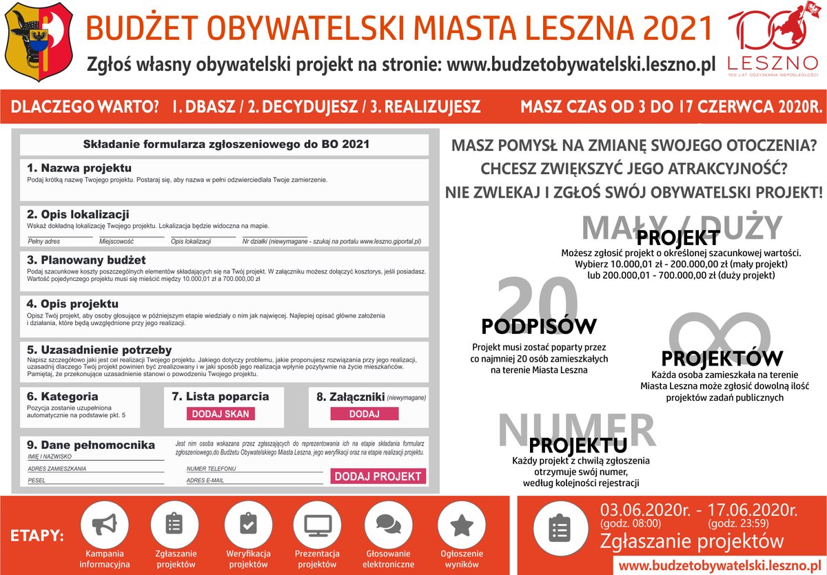 Więcej informacji znajdziesz na dedykowanej stronie: www.budzetobywatelski.leszno.pl oraz na oficjalnym profilu społecznościowym: www.facebook.com/budzetobywatelskimiastaleszna