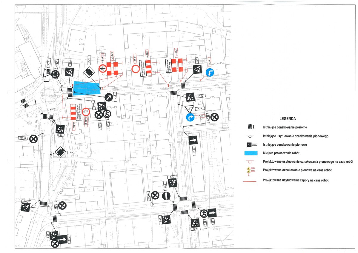 Zamknięty dla ruchu kołowego zostanie powyższy odcinek jezdni w obu kierunkach, ruch pieszy będzie dopuszczony po południowej stronie ulicy.